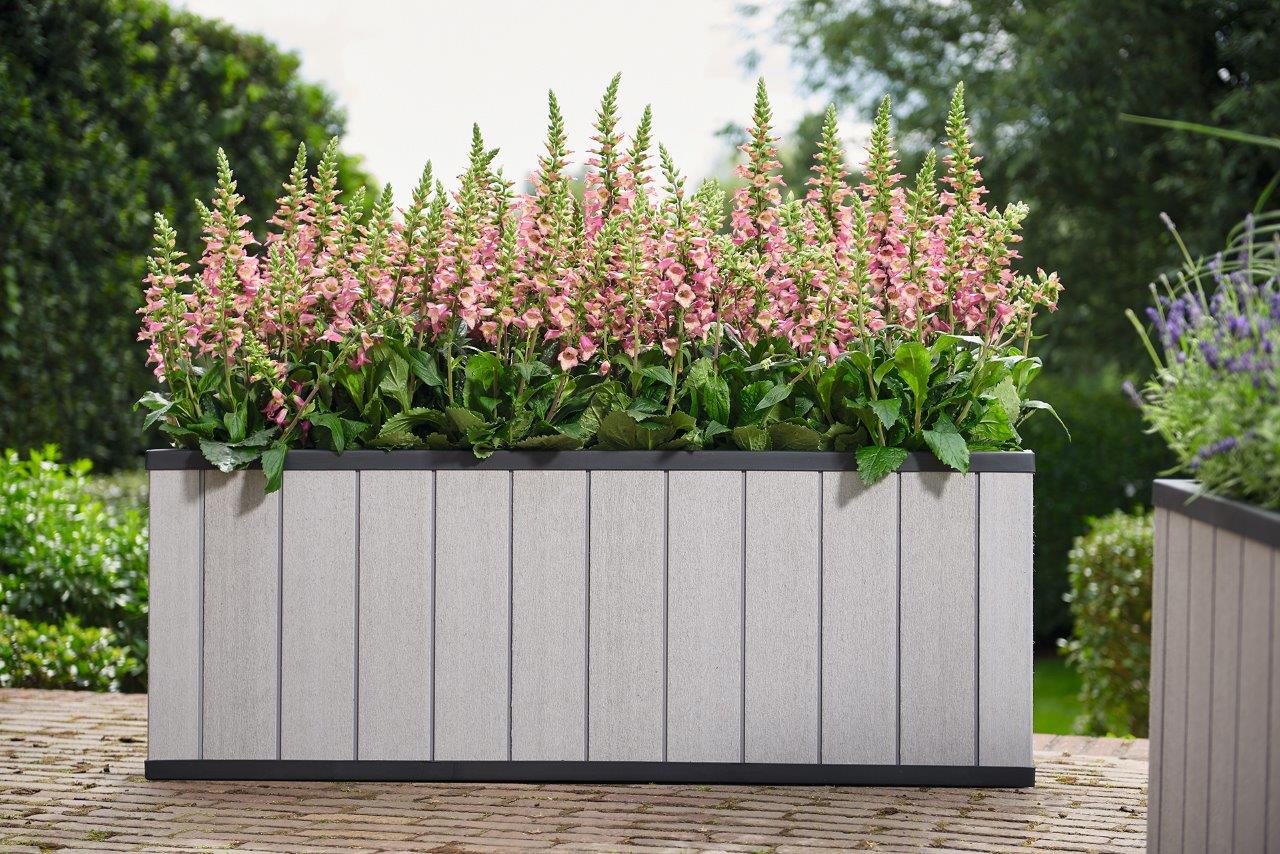 Rozměrný obdélníkový květináč Sequoia Medium značky Keter v šedo-hnědé barvě patří do produktové řady Duotech. Svým designem připomíná vitage přírodní dřevěné palubky. Skvěle tak doplní jak moderní, tak i tradiční look okolí. Květiny v něm přirozeně vyniknou.