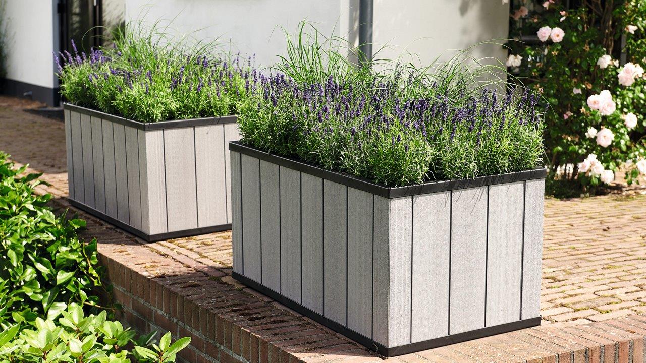 Tento nízkoúdržbový květináč je odolný vůči rzi, hnilobě a dalším poškozením způsobených nepříznivým počasím. Inovativní materiál DUOTECH™ z umělé pryskyřice vzhledem připomíná broušené dřevo, ale narozdil od něj je pevný delší dobu a odolný vůči okolním přírodním vlivům.