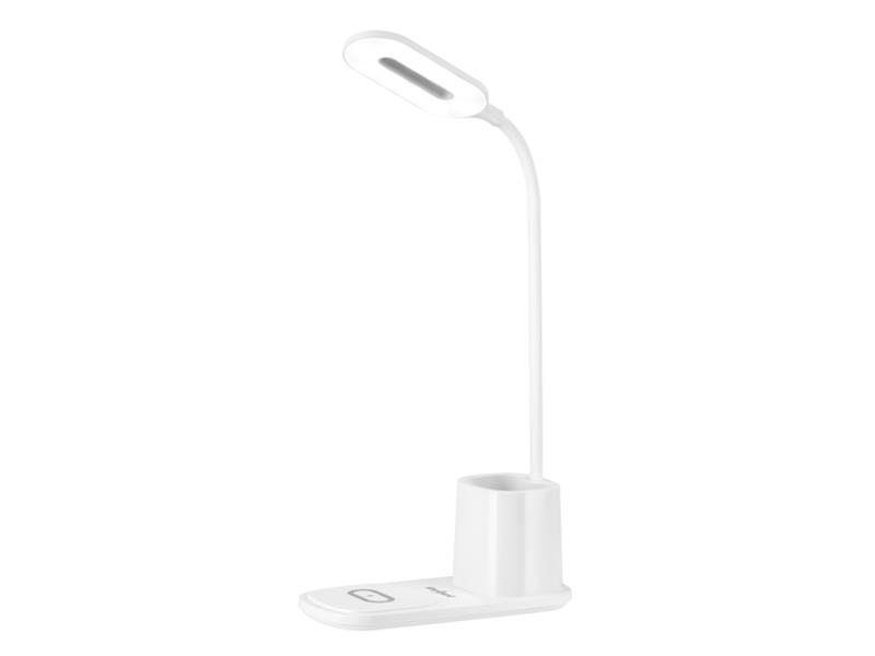 Lampa stolní REBEL RB-6302-W Technické parametry: - Funkce indukční nabíječky - Vstup Micro USB - Režimy osvětlení: teplé světlo 100% a 10%, studené světlo 100% - Výkon bezdrátového nabíjení: 5 W, 7,5 W, 10 W - Vstupní napětí: 9 V 2 A (port Micro USB) - Rozměry: 170 x 80 x 77 mm - Hmotnost: 171 g