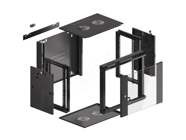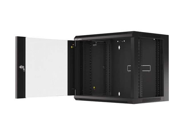 LANBERG Nástěnná jednodílná skříň 19", 9U 570x450 snadná a rychlá montáž (v rozloženém stavu) černá (RAL9004)