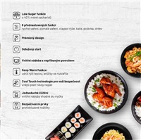 Rýže s až o 40 % nižším obsahem sacharidůLauben Low Sugar Rice Cooker je víceúčelový prémiový rýžovar s funkcí low sugar, při níž díky speciální technologii vaření dochází k separaci sacharidů. S tímto pomocníkem dovedete k dokonalosti všechny druhy rýže a díky 6 nastavitelným režimům rychle vytvoříte zdravá a chutná jídla i z dalších surovin. S rýžovarem Lauben připravíte luštěniny, polévku nebo třeba ovesnou kaši, aniž byste zapnuli sporák.