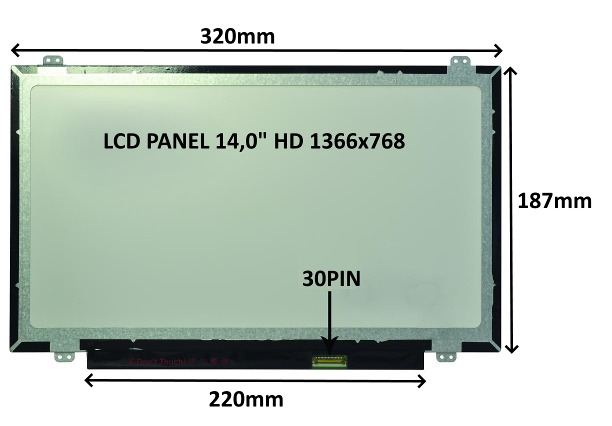 LCD PANEL 14,0" HD 1366x768 30PIN MATNÝ / ÚCHYTY NAHOŘE A DOLE