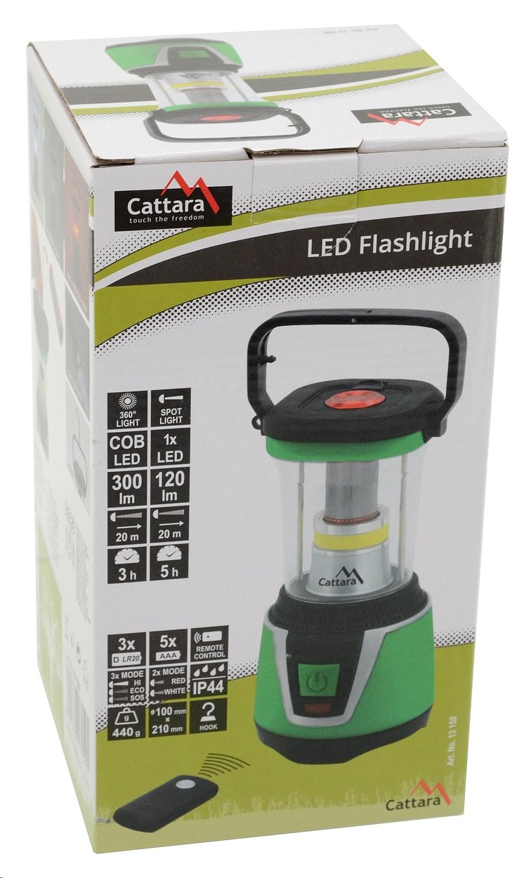 Kempingová svítilna Cattara CAMPING 13150 s celou řadou funkcí a mimořádně vysokou úrovní prostorového 360° osvětlení. Lucernu jde pohodlně zapínat a vypínat dálkovým ovladačem.