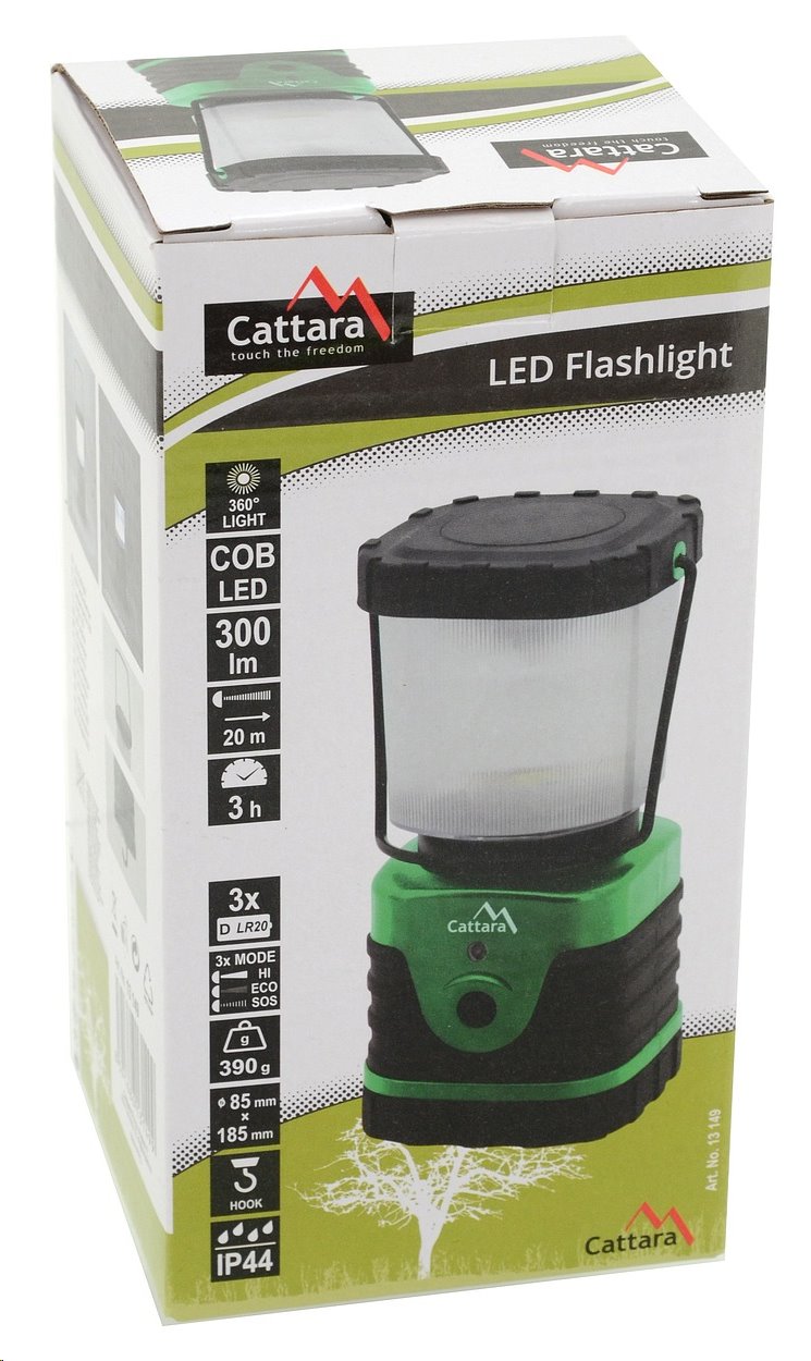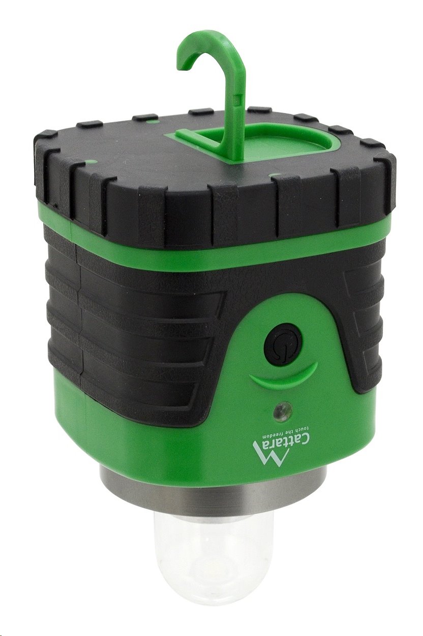 Kompaktní, kempingová svítilna Cattara CAMPING 13149 s mimořádně vysokou úrovní prostorového, 360° osvětlení a dlouhou provozní dobou díky použití úsporného COB LED svítidla.