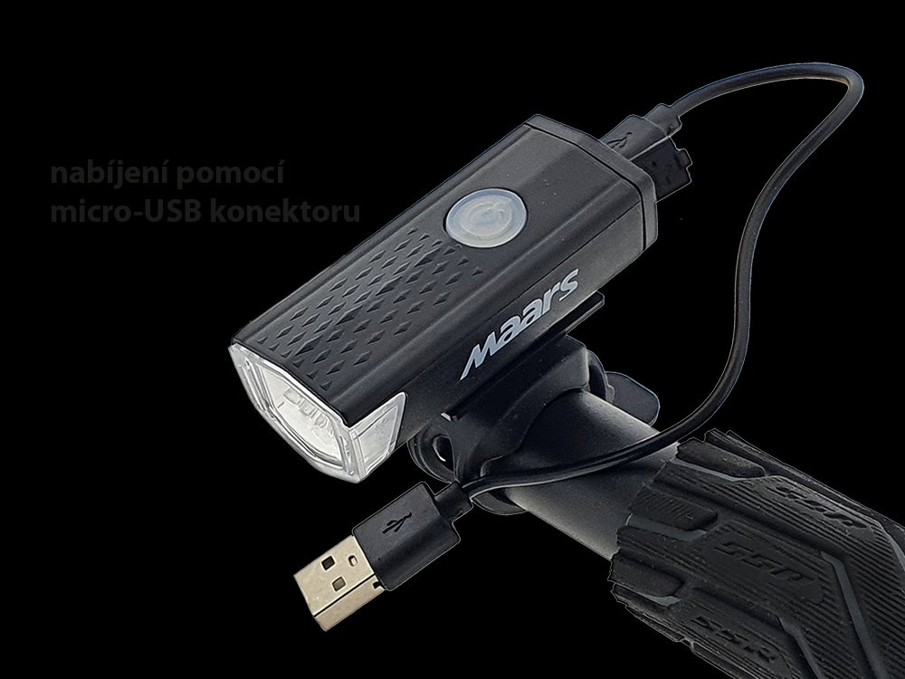 Světlo vám vydrží při aktivním používání svítit až 4 hodiny. Záleží na tom, jak náročný mód nastavíte. MAARS MS 401 napájí baterie s dlouhou životností 700 mAh Li-ion. Vnitřní akumulátor nabijete přiloženým micro USB konektorem.