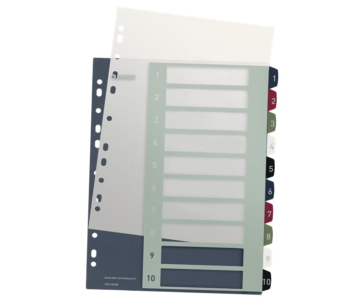 Opakovatelně použitelný a extra odolný plastový rejstřík ve stylových barvách.. Potisknutelný na PC pro upravení dle vlastních potřeb pomocí nástroje na www.leitz.com/easyprint
