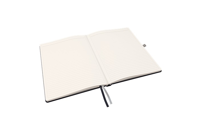 Prémiový zápisník s tvrdými deskami. Formát A4, linkovaný.