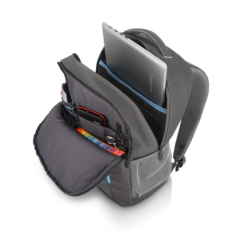Moderní batoh Lenovo Backpack B515 je určený pro notebooky, s maximální úhlopříčkou 15.6". Batoh je šedý, s modrými doplňky.