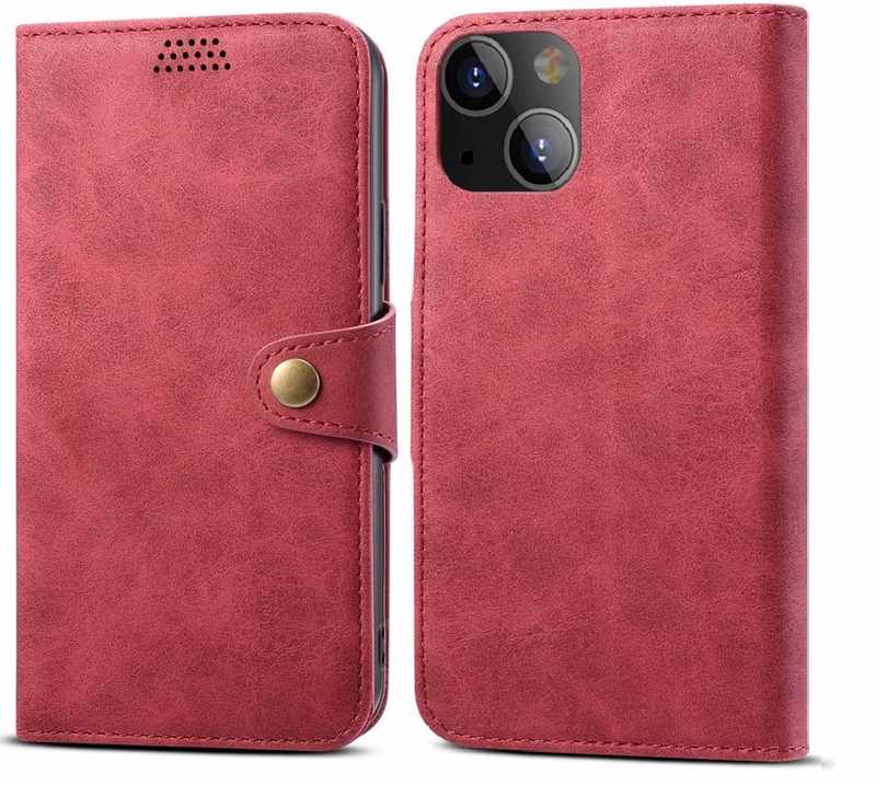 Lenuo Leather flipové pouzdro pro iPhone 14 Plus, červená