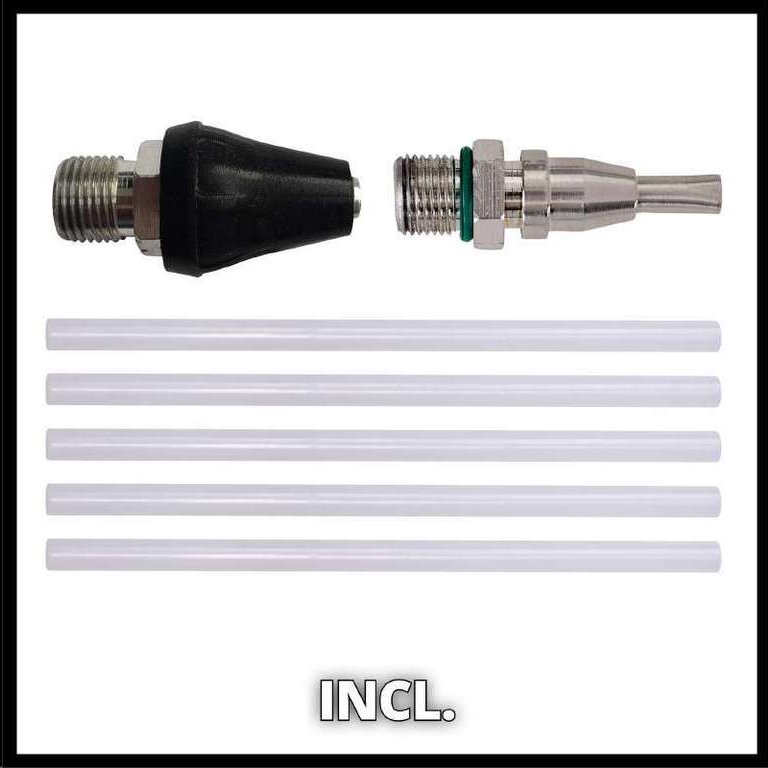 Akumulátorová lepicí pistole je dodávána spolu s pěti lepicími tyčemi (průměr 11 mm, délka 200 mm). Tento produkt je dodáván bez baterie a nabíječky.