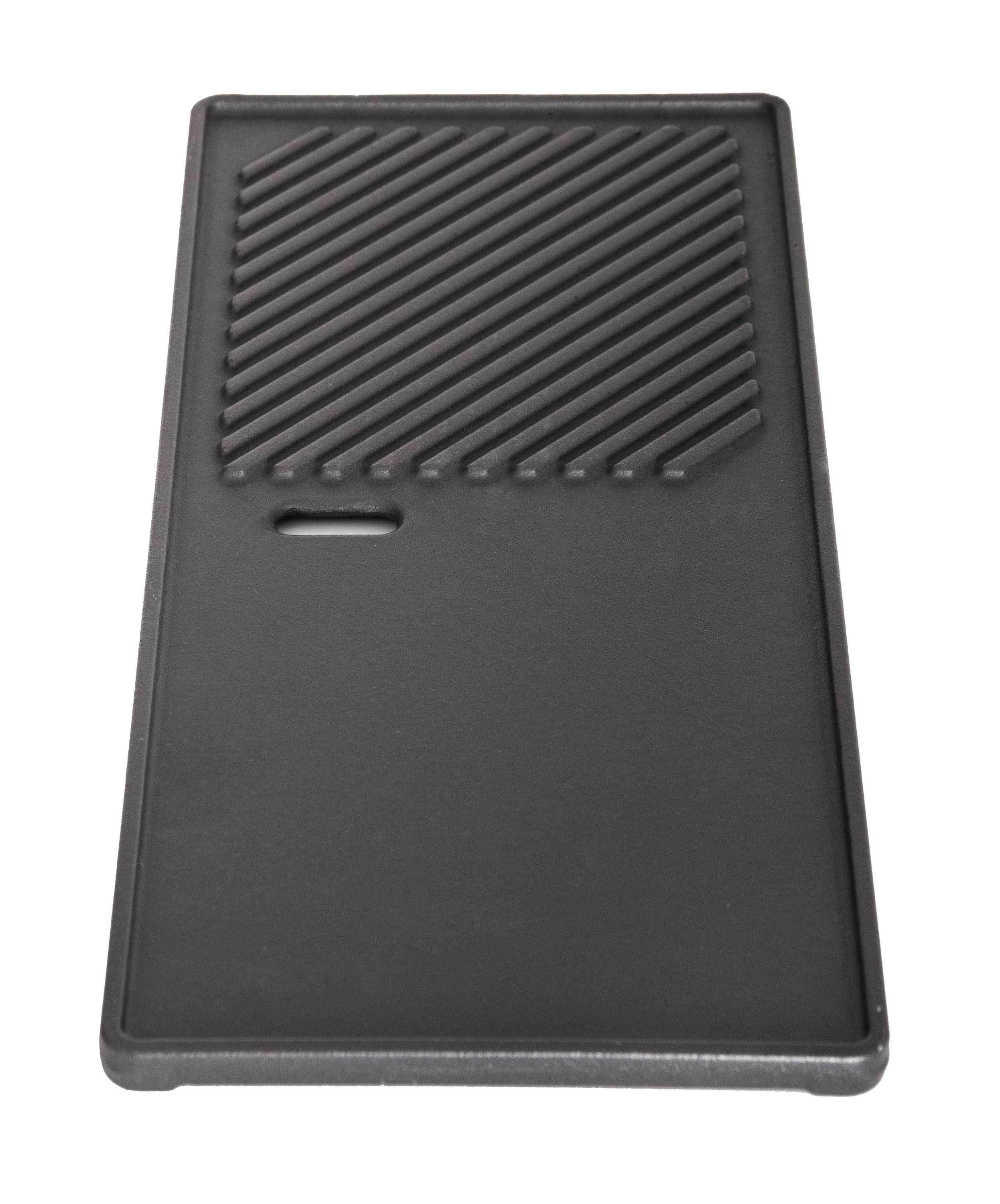 Litina patří mezi nejodolnější materiály, které se pro grilování používají. Je vysoce odolná proti vysokým teplotám a poškrábání. Na každé polovině litinového plátu máte k dispozici jiný druh povrchu. Jedna polovina je hladká a využijete ji především pro grilování nakrájené zeleniny, vajíček a sýrů. Druhá polovina s vroubky je určena pro správné grilování steaků, větších kusů zeleniny a ryb.