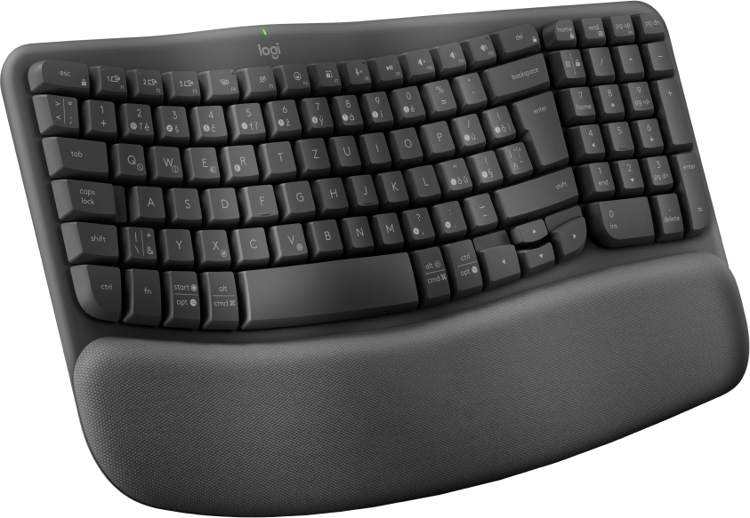 Vychutnejte si výhody klávesnice ve tvaru vlny s polstrovanou opěrkou zápěstí. Vychutnejte si větší oporu zápěstí, menší tlak a přirozenou polohu při psaní po celý den.