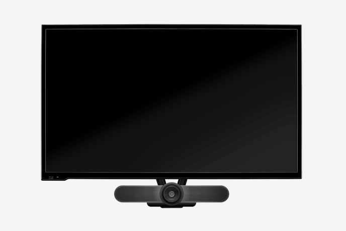 Jedinečný design TV držáku umožňuje kameru MeetUp upevnit nad nebo