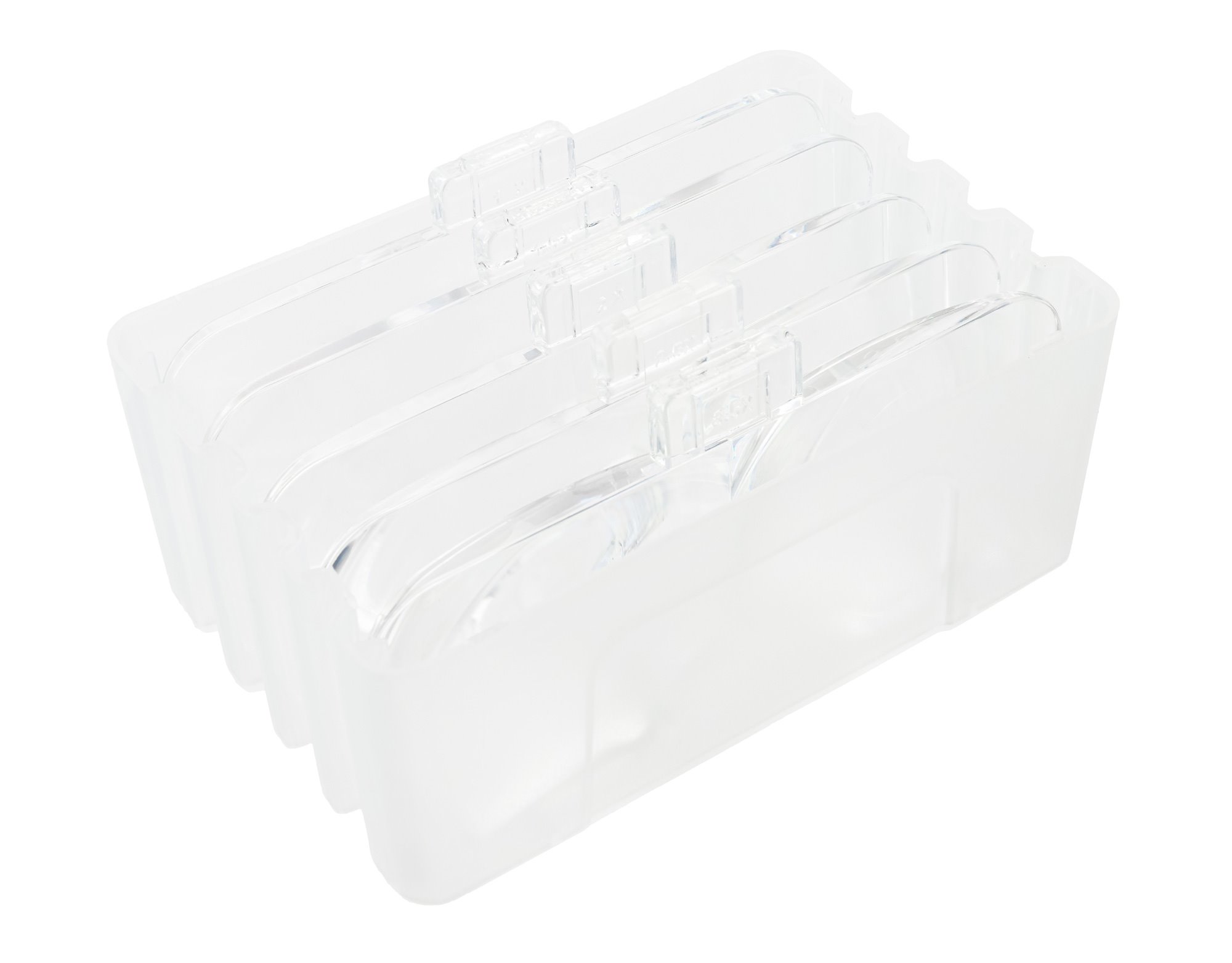 Optický systém obsahuje 2 obdélníkové čočky a 1 kruhovou čočku, kdy velký průměr hlavní čočky pokryje mnohem větší oblast pozorování. Čočky lze pak vzájemně kombinovat mezi s sebou, díky čemuž lupa poskytuje hned 6 úrovní zvětšení 1 / 1,5 / 2 / 2,5 / 3,5 / 8x. Veškeré optické příslušenství je vyrobené z vysoce kvalitního polymerového skla, tudíž čočky nabídnou jasný a ostrý obraz bez jakéhokoliv rozmazání nebo geometrické deformace. Použitý materiál navíc přináší vyšší odolnost vůči mechanickému i chemickému poškození, což výrazně prodlužuje životnost optických prvků na maximum.