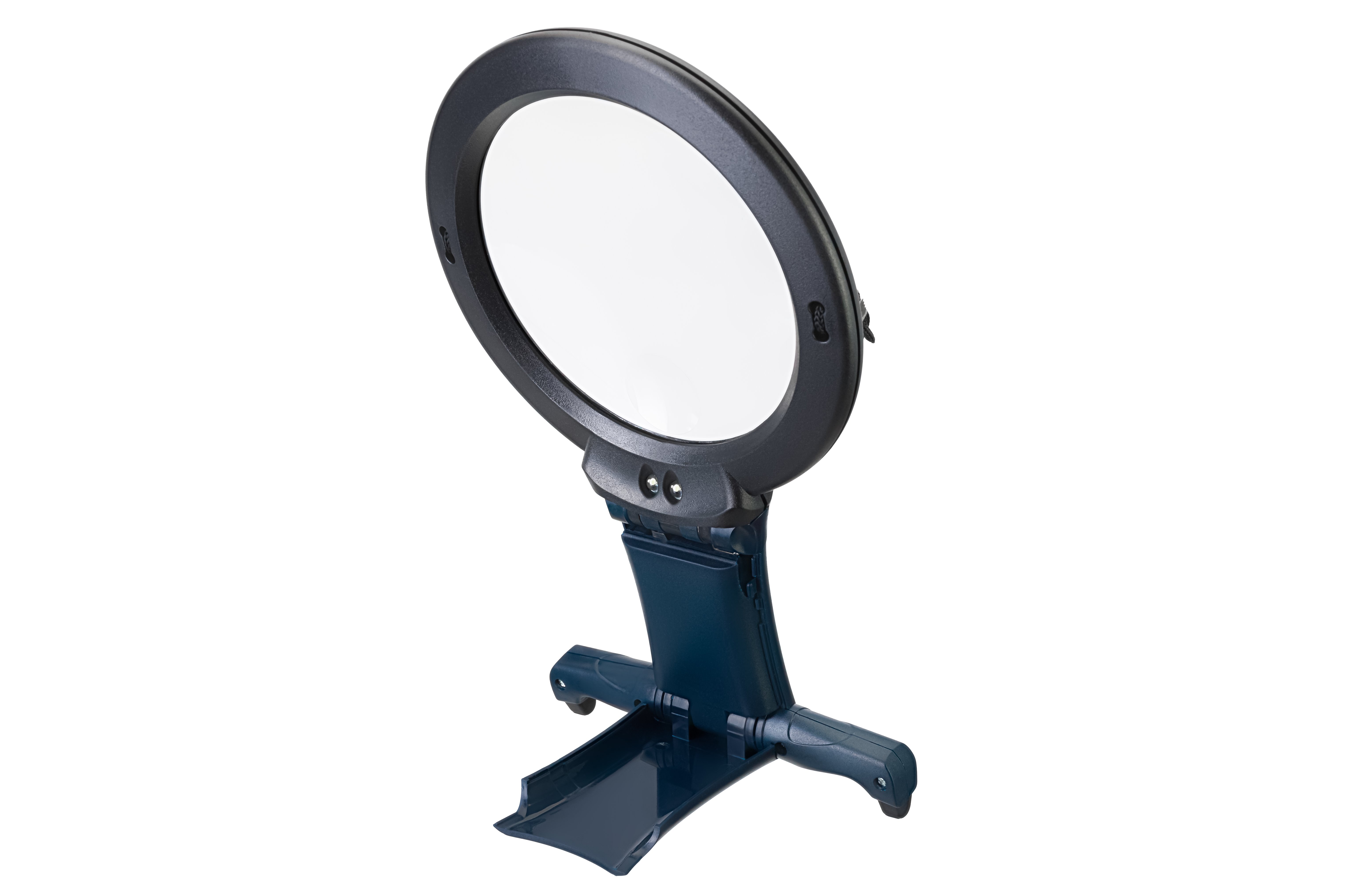 - Pomocí vestavěného stojánku může lupa volně stát na stole