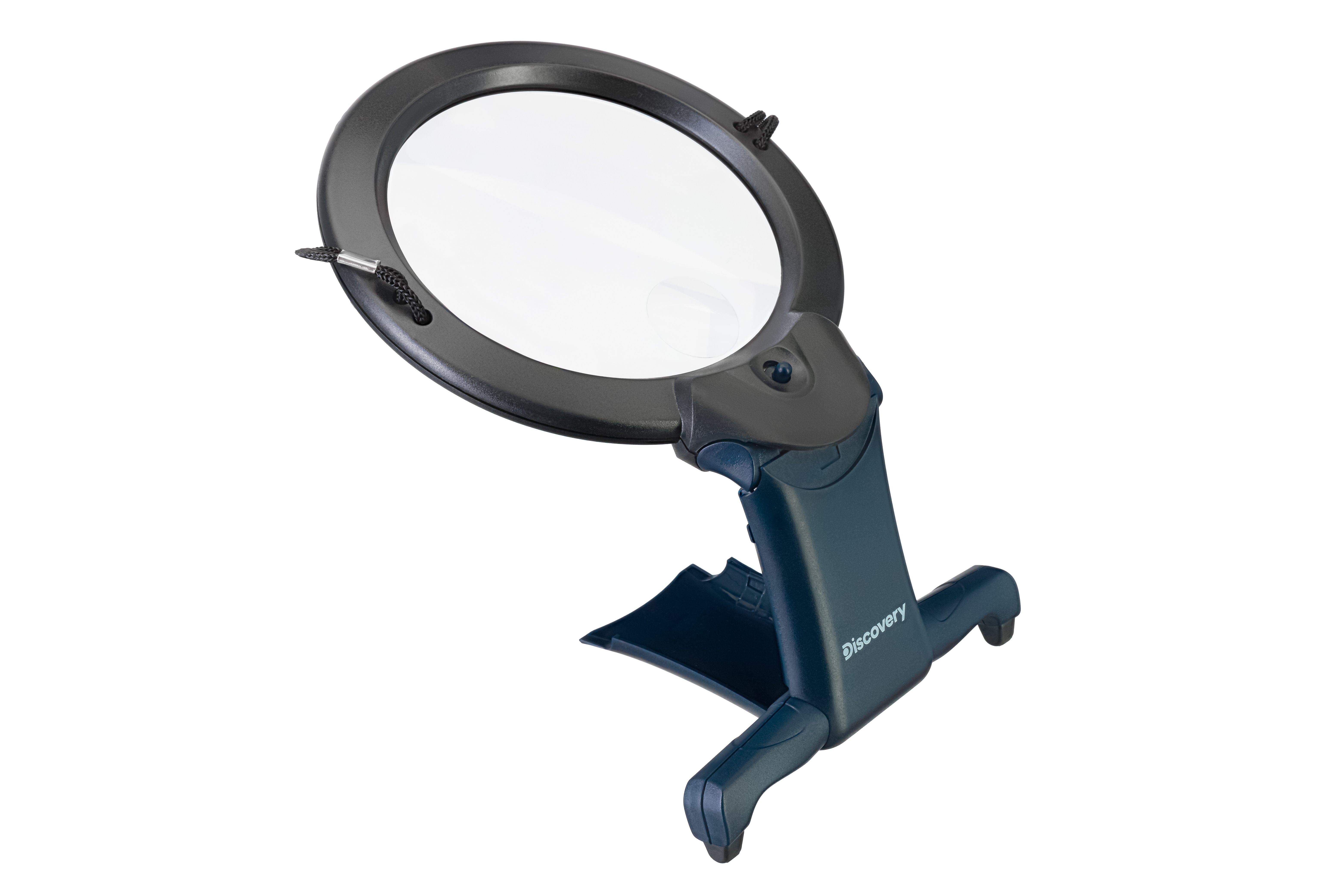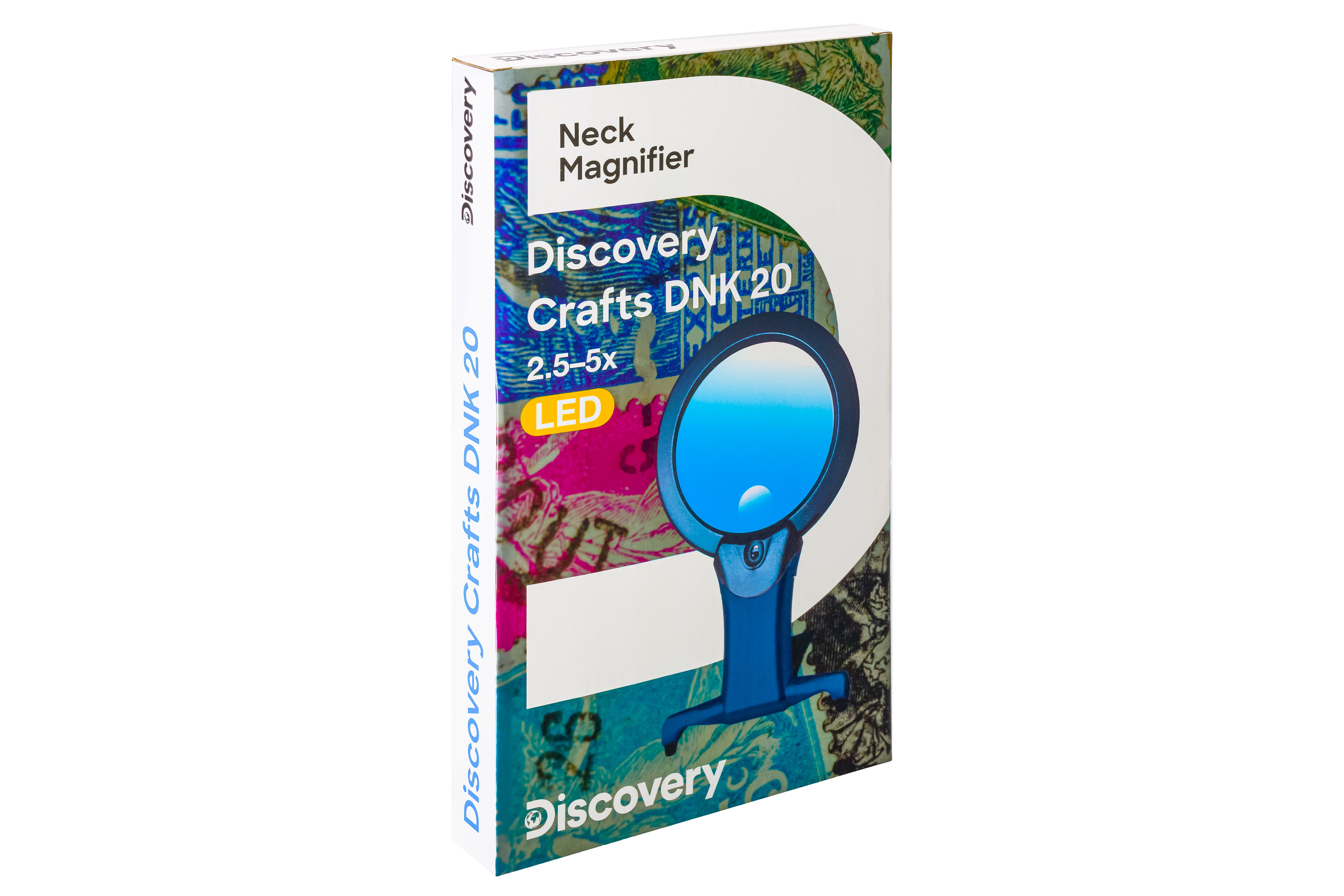 Závěsná lupa Discovery Crafts DNK 20 s vestavěným stojánkem a s LED osvětlením je ideální pro všechny uživatele, který vyžadují maximální flexibilitu a přesnost práce. Prostřednictvím nastavitelného řemínku ji zavěsíte okolo svého krku nebo ji položíte na stůl pomocí integrovaného držáku, takže se zvětšování textu i libovolných předmětů obejde zcela bez užití rukou. Ponechává tak obě horní končetiny volné pro různorodé činnosti, kdy se hodí pro hobby i profesionální použití všeho druhu.