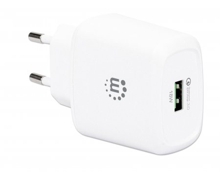 MANHATTAN USB-A nabíječka QC 3.0 Wall Charger - 18 W, USB-A Quick Charge™ 3.0 Port up to 18 W, Europlug, bílá