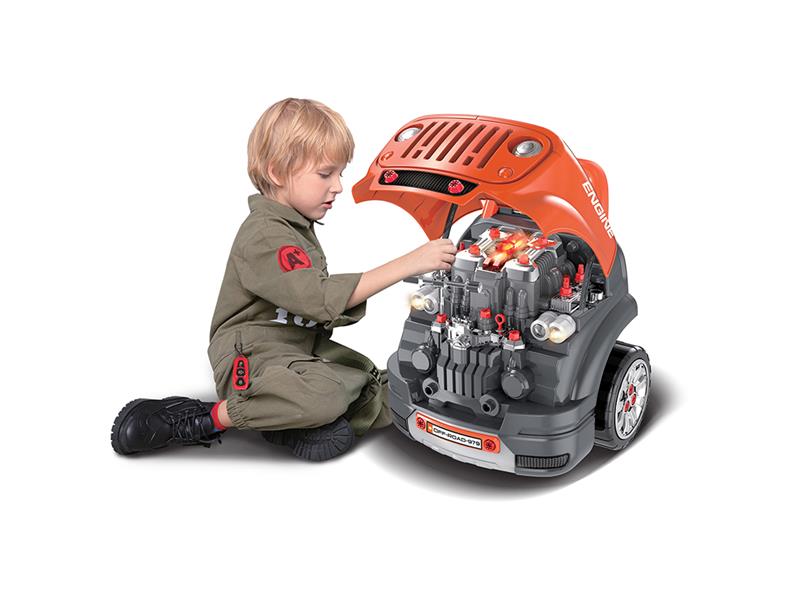 Dětská dílna - automechanik Technické parametry: - Podporuje kreativitu, logické myšlení a fantazii u dětí - Motor jde sestavovat a rozebírat, - Klíč od auta, zamykání/odemykání, alarm, zvukové efekty - Simulujte skutečnou jízdu, nastartuje motor, zapněte světla, volat s klaksonem - Rukojeť pro přemístění motoru. - Rozměry: 47 x 40 x 39 cm - 61…