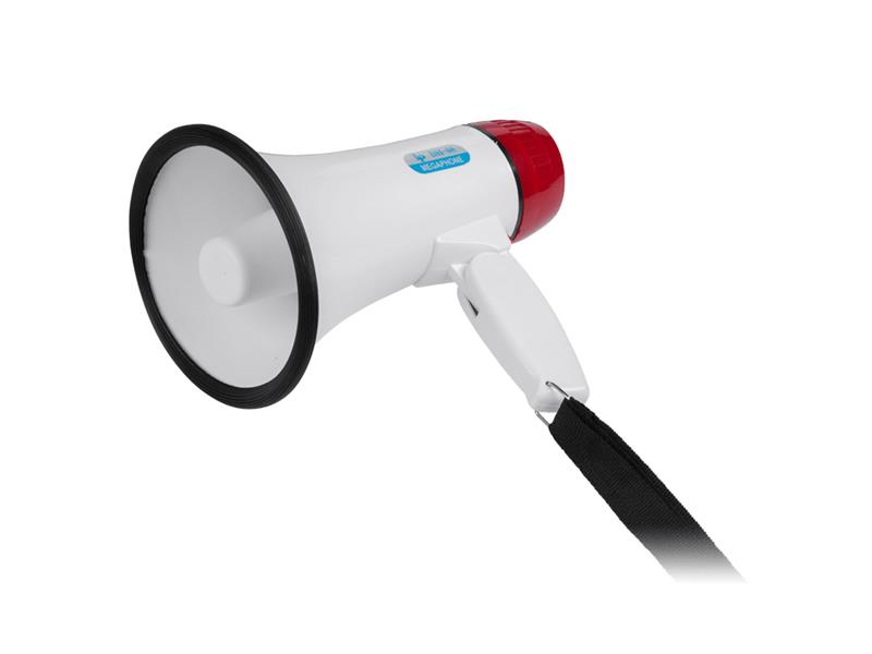 Megafon DH08 Technické parametry: - Výkon: 5 W - Průměr: 130 mm - Délka: 220 mm - Napájení: 4x R14 - Další funkcí je možnost použití jako sirény