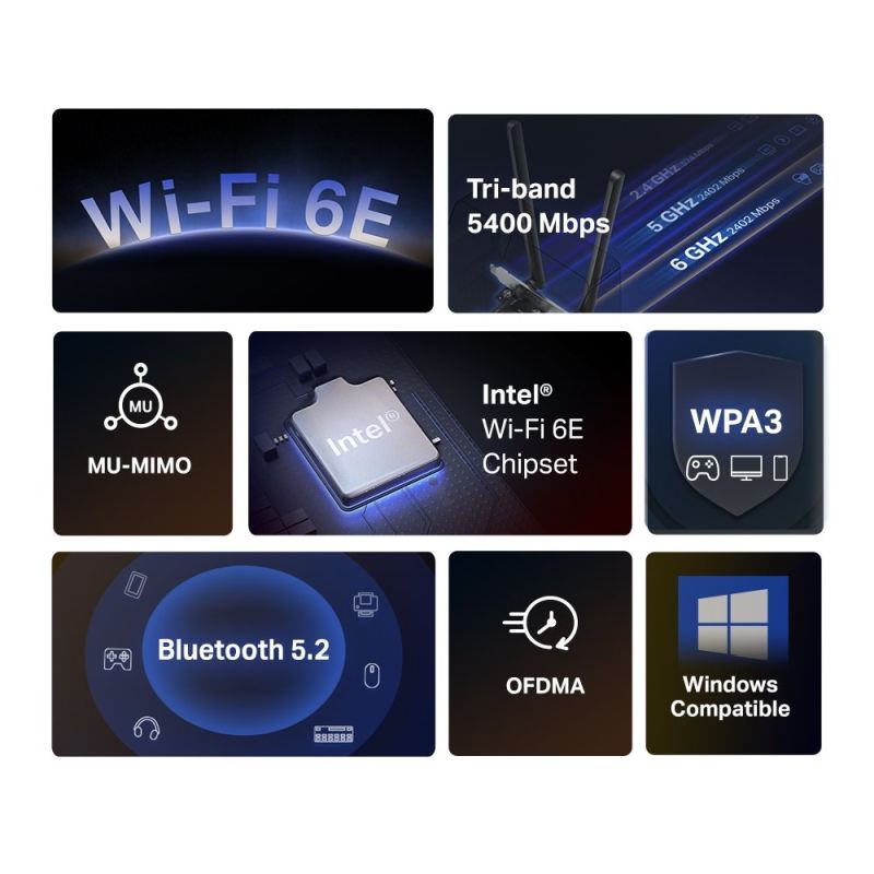 Bezdrátové frekvence:2.4 + 5 + 6 GHz (triple band)