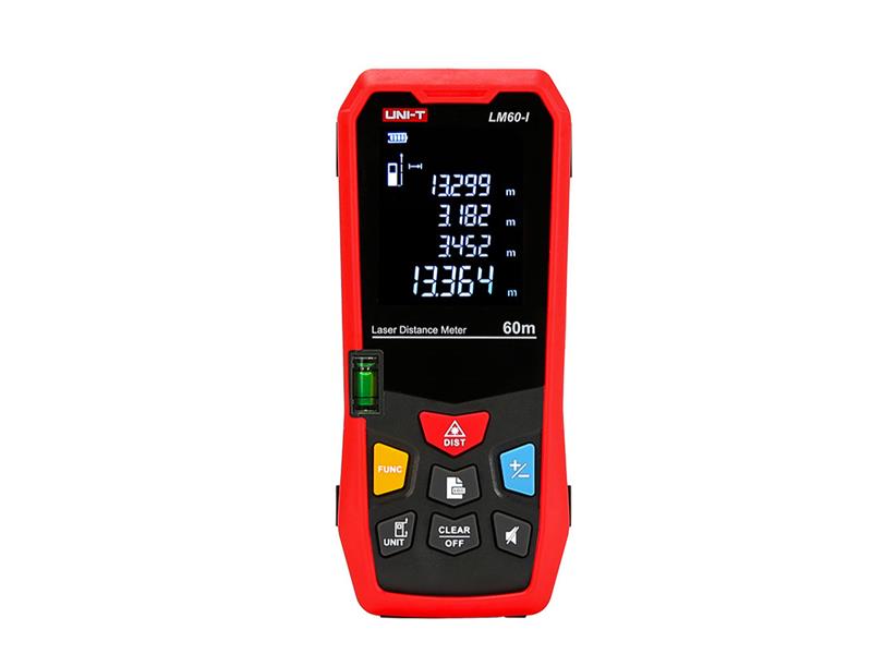 Laserový dálkoměr LM60-I s délkou měření až do 60 metrů s funkcemi měření délky, objemu, obsahu, měření s využitím dvou referenčních bodů a pamětí na 20 měření. Dálkoměr podporuje funkce sčítání, odčítání měřených hodnot, možnost kontinuálního měření, výpočtu rozměru třetí strany dle Pythagorovy věty. Dálkoměr podporuje funkci automatického vypnutí laseru po 30 sekundách a úplné vypnutí přístroje po 3 minutách v případě nečinnosti.