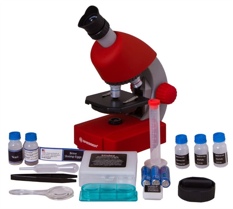 Barevný dětský mikroskop Bresser Junior 40x-640x je určený malým biologům. Je opatřen dvoupolohovým okulárem a LED osvětlením s nastavitelným jasem a proto je jeho používání snadné a intuitivní. Kapka vody, sněhové vločky, listy pokojových rostlin, kuchyňská sůl, černý pepř, jogurt z chladničky, stará měděná mince a další všední věci se tak ukážou ve zcela jiném světle. Rozsah zvětšení 40x až 640x potěší všechny zvídavé děti při zkoumání minimalistických předmětů.