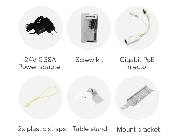 Součástí dodávky napájecí zdroj, PoE injektor, držák, instalační