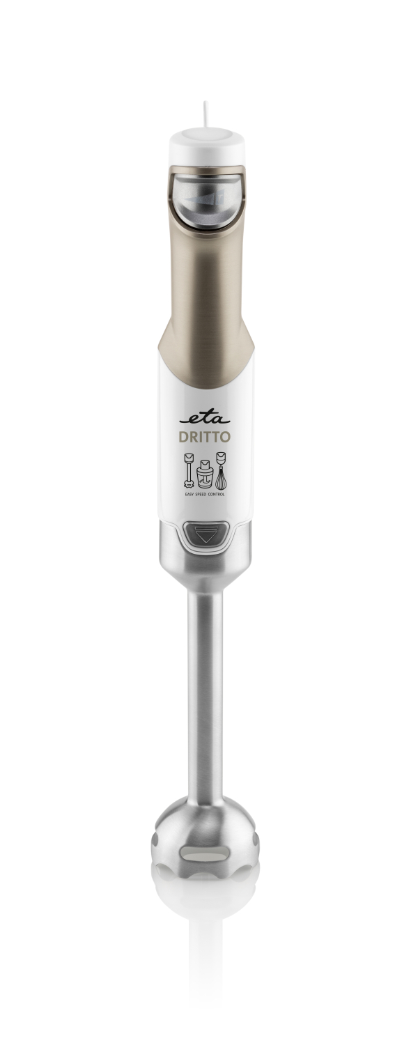 Tyčový mixér ETA Dritto vám usnadní každodenní práci v kuchyni, ať už potřebujete mixovat, šlehat nebo jen něco rychle a nadrobno nasekat. Tyčový mixér Dritto je elegantní pomocník v plastovém provedení s výkonným DC motorem o příkonu 800 W.