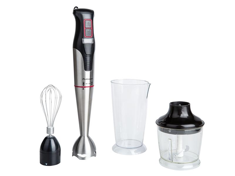 Tyčový mixér s příkonem 1200 W a 2 rychlostmi. Rohnson R-598 je vybaven 4 nerezovými noži, snadno odnímatelným mixovacím nástavcem a světelnou indikací provozu. V balení naleznete sekáček s nerezovými noži, mixovací nádobu a nerezovou šlehací metlu.