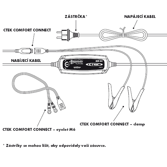 - 1x nabíječka a Comfort Connect Clamps (krokosvorky) a Comfort Connect Eyelet (očka) M6