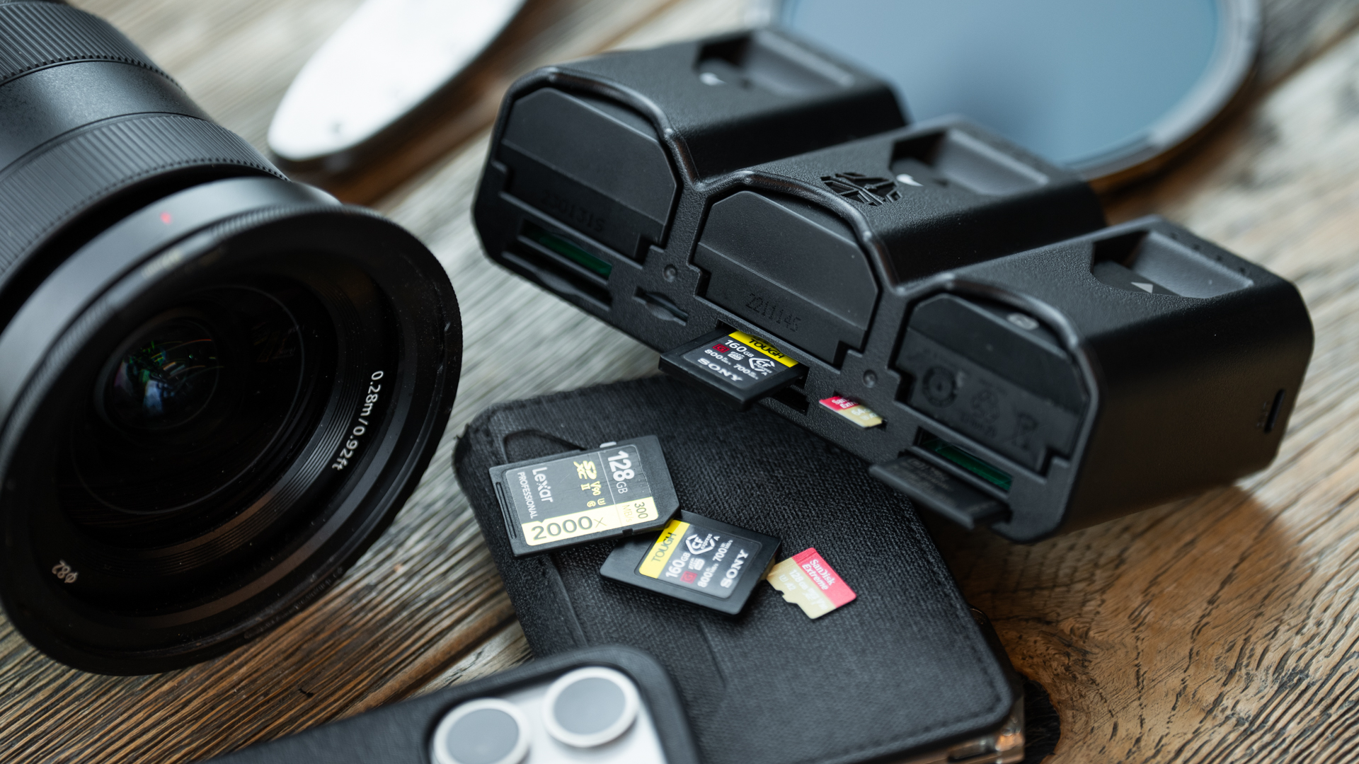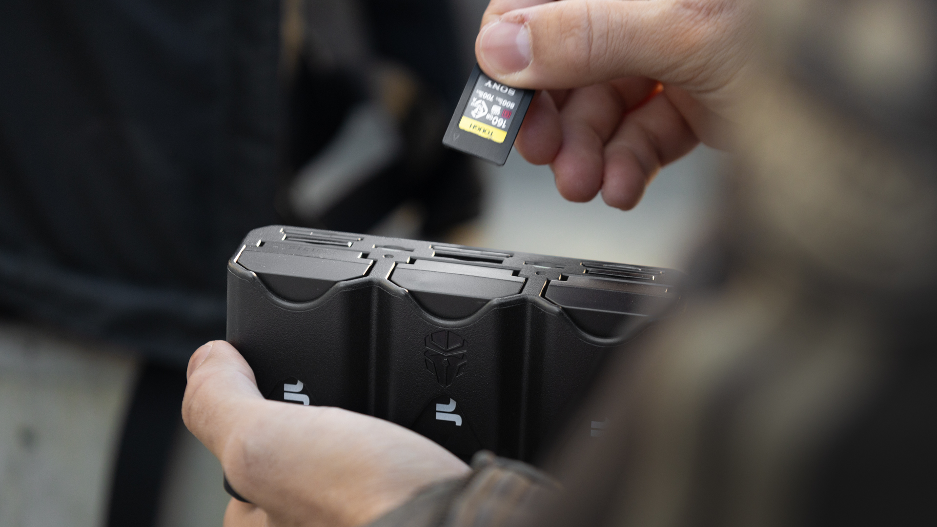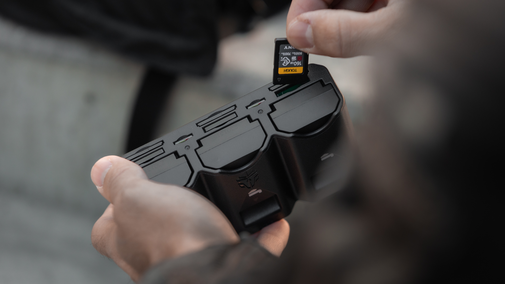 - Ochranné pouzdro pro 3 baterie, 3x SD kartu, 2x microSD kartu a 3x CFexpress kartu