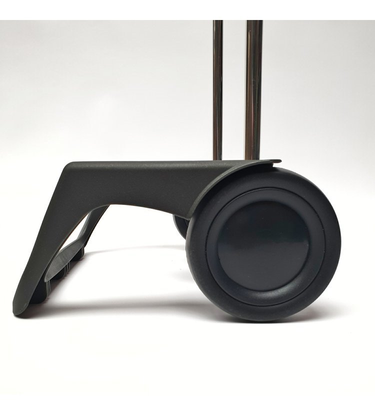 Podvozek je vybavený přední oporou, která umožňuje tašku postavit volně do prostoru, třeba když čekáte na tramvaj nebo před rychlým občerstvení. Oporu lze snadno sklopit, čímž dosáhnete plochého tvaru tašky a snadno ji tak uložíte třeba za skříň. Ergonomické protiskluzové držadlo zajišťuje komfortní úchop a přispívá tak ke snadné manipulaci s vozíkem. Výška konstrukce 97,5 cm je vhodná pro uživatele nižší a střední postavy.