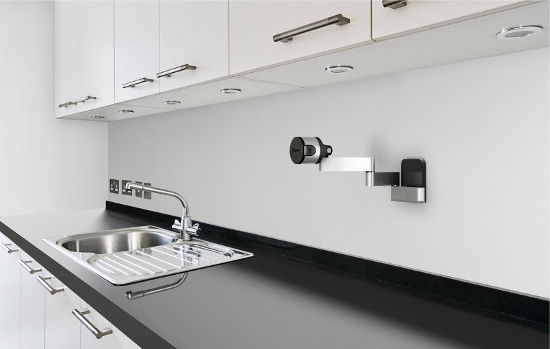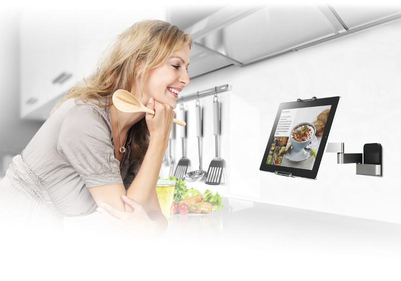 Tablet je velmi užitečným pomocníkem i v kuchyni nejen pro vytváření hudební kulisy, ale i jako pomocná ruka při přípravě vašich kulinářských kreací. Pro jeho maximální užití navrhli ve Vogel's pohyblivý držák poskytující spolehlivé a flexibilní uchycení na stěnu.