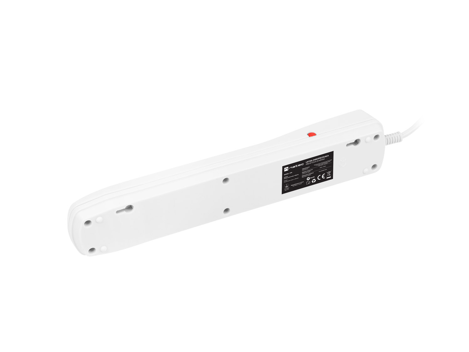 Natec přepěťová ochrana BERCY 400, 1,5m, vypínač, bílá
