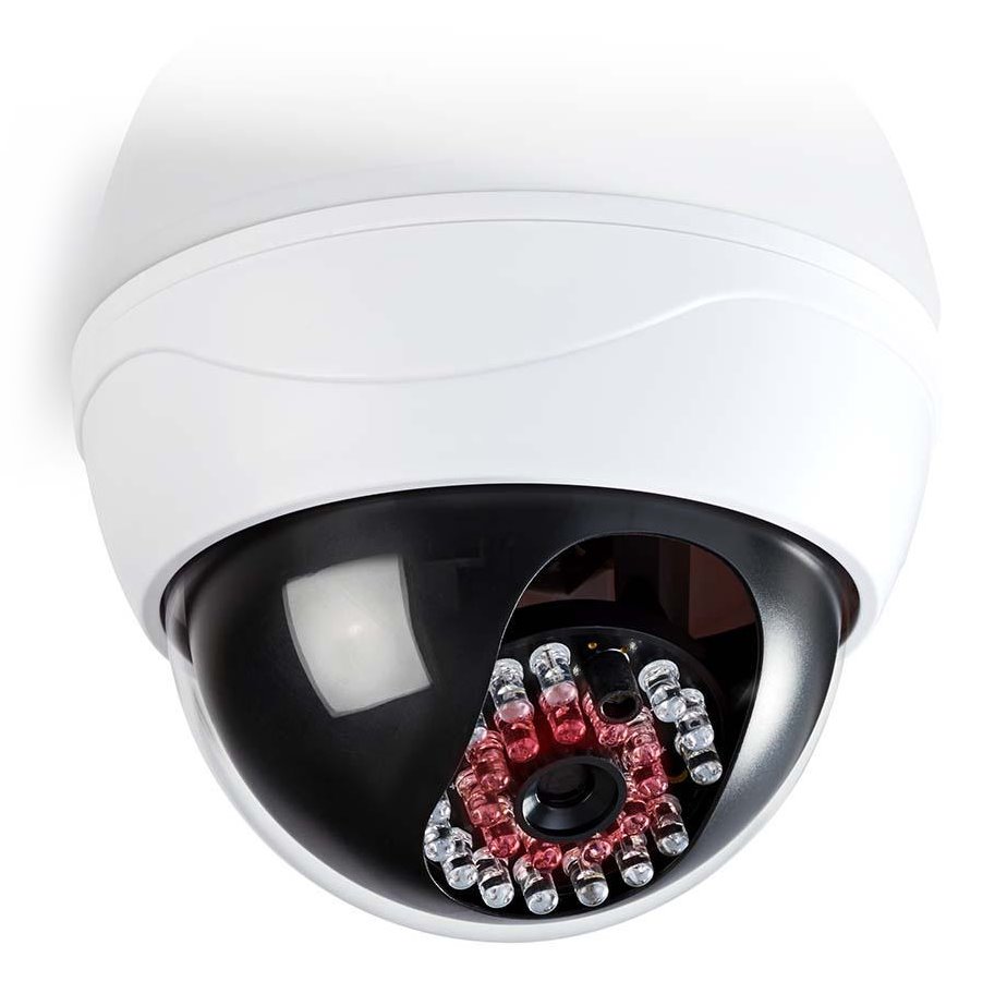 Atrapa venkovní kopulovité kamery pomáhá zastrašit narušitele. Má profesionální design, vyznačuje se vestavěnou infračervenou blikající LED a lze ji snadno namontovat pomocí dodané konzole.