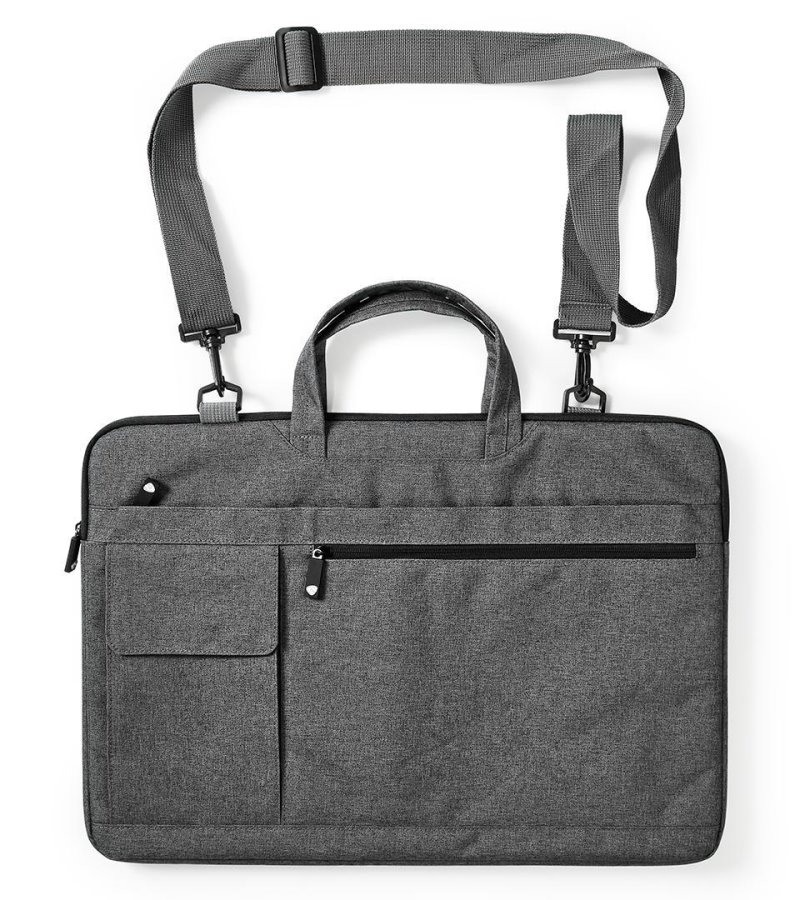 Kvalitní tenká brašna pro notebook do úhlopříčky 18". Díky odolné látce a měkkému polstrování je tato brašna ideální na každodenní cestování. Brašna má tři oddělené kapsy se zipy a čtyři vnitřní kapsy, do kterých se vejde všechno příslušenství, jako je myš, časopisy, napájecí adaptér a psací potřeby. Na přední straně brašny se nachází také speciální kapsička na smartphone. Robustní rukojeť zajistí pohodlné přenášení, které je také možné pomocí nastavitelného odnímatelného ramenního popruhu.
