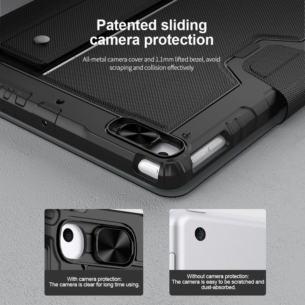 Nillkin Bumper Combo Keyboard Case je víceúčelový ochranný kryt tabletu s klávesnicí, slotem pro Apple Pencil s automatickým nabíjením a plynule nastavitelným úhlem tabletu.