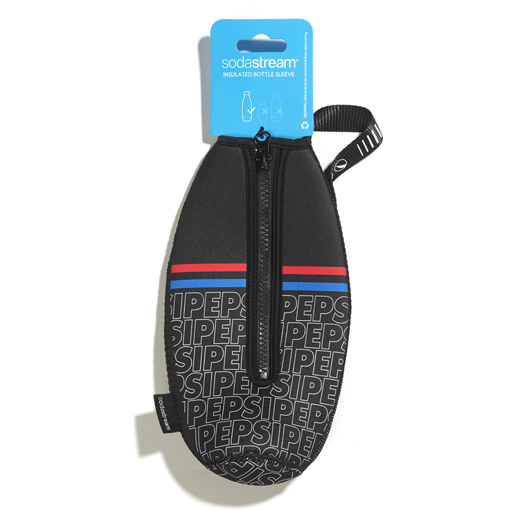Limitovaná edice neoprenového obalu Sodastream v černé barvě s proužky červené a modré barvy. Spodní část, je černě podbarvená s nápisy Pepsi. Obal je doplněný praktickým poutkem pro snadné nošení s sebou. Tento design je jedním z 5 unikátních designů, které jsou nyní dostupné. Nové neoprenové návleky jsou navržené pro 1litrové lahve SodaStream Fuse. Neoprenový materiál, ze kterého je obal vyrobený udrží váš nápoj déle studený, nebo teplý. Jedná se o velmi elegantní doplněk, pro vaší SodaStream lahev.