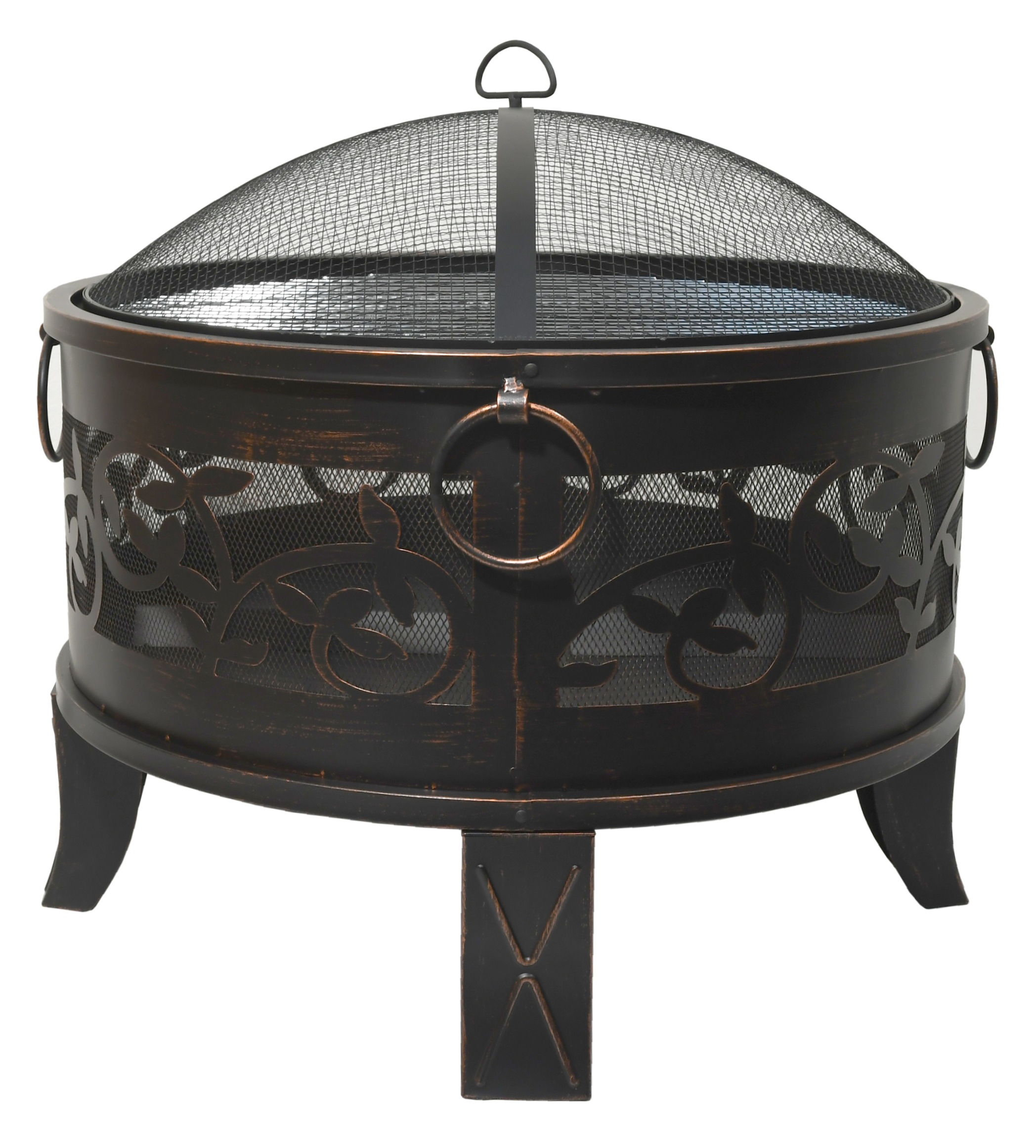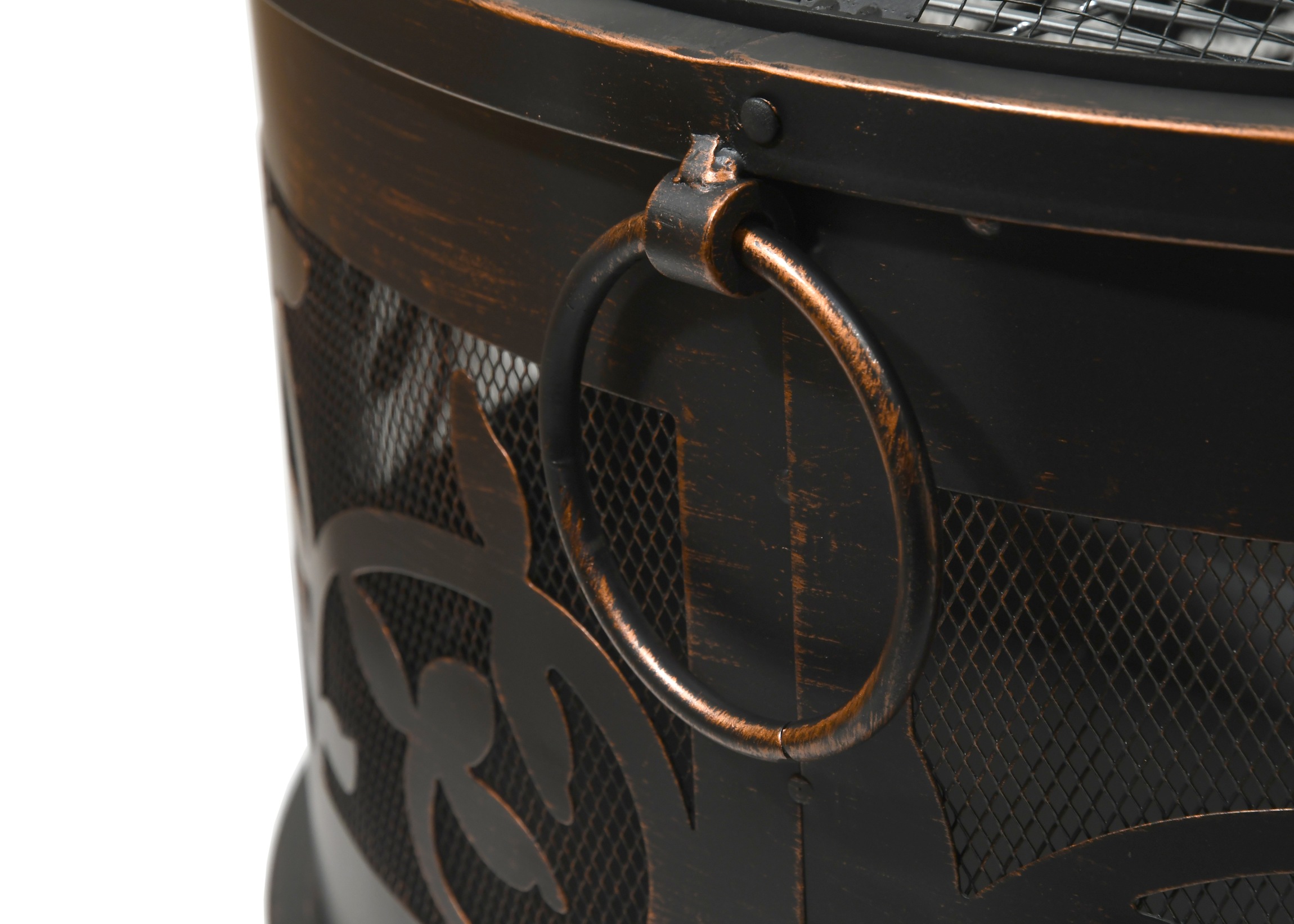 Konstrukce ohniště se vyrábí z kvalitní oceli s vysokoteplotním černým a měděným nátěrem s patinou. 4 bytelné nohy poskytnou ohništi dostatečnou stabilitu.