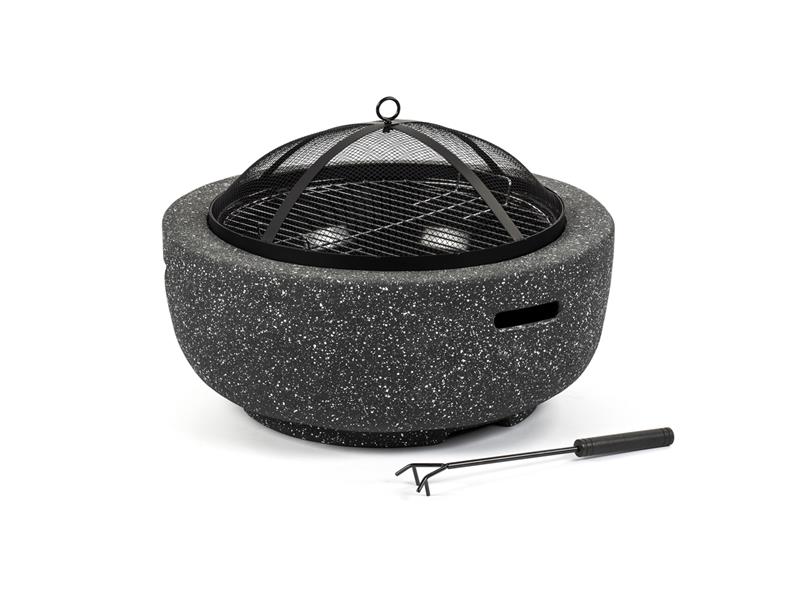 Tělo ohniště je vyrobeno z elegantního páleného kamene. Dobře vypadá, ale především chrání trávu a podlahu pod ohništěm od spálení. Pro bezpečnější používání je ohniště navíc vybaveno síťovým poklopem, který zachytává drobné uhlíky. Tím snižuje riziko propálení oblečení nebo dokonce vzniku požáru.