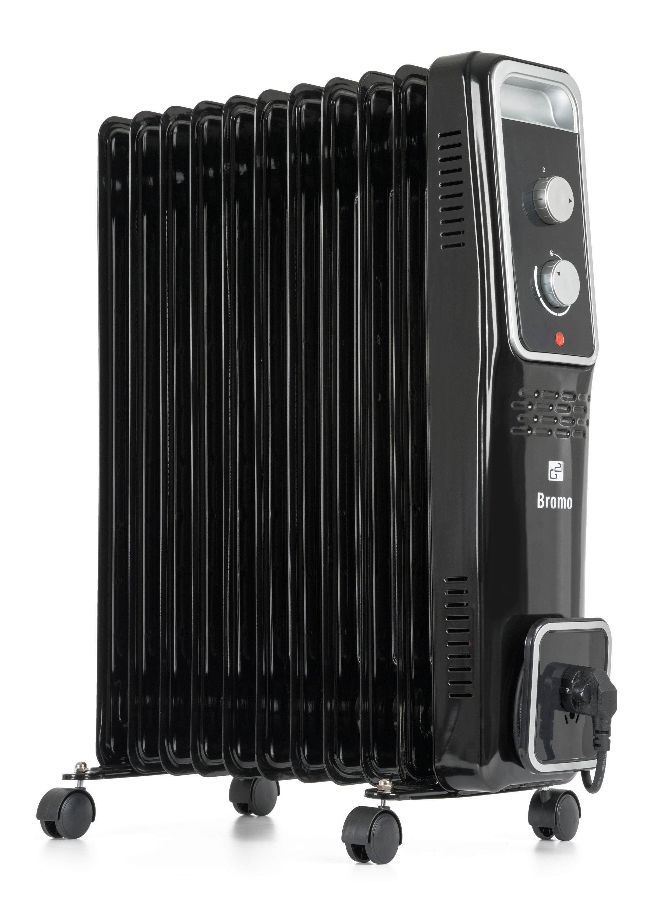 Výkonný, tichý, bezúdržbový, spolehlivý, bezpečný a efektivní – těchto šest slov dokonale vystihuje olejový radiátor G21 Bromo. Jedenáctižebrový radiátor s vysokým výkonem a tichým chodem vyhřeje všechny prostory s nedostatečným nebo žádným vytápěním. Využijete jej například k přitápění v obytných prostorách včetně ložnic, k vyhřátí chaty a podobně.