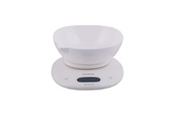 Digitální kuchyňská váha,, Miska s objemem 1 l, ,Velký LCD displej,, Váživost do 5 000 g (přesnost 1 g),, Měření objemu vody a mléka (ml / cup),, Vážení hmotnosti (g / oz),, Funkce dovažování / nulování TARE,, Velké dotyková tlačítka pro pohodlné ovládání, , Automatické vypnutí při nečinnosti,, Indikace slabé baterie a přetížení, , Napájení: 1 x 3…