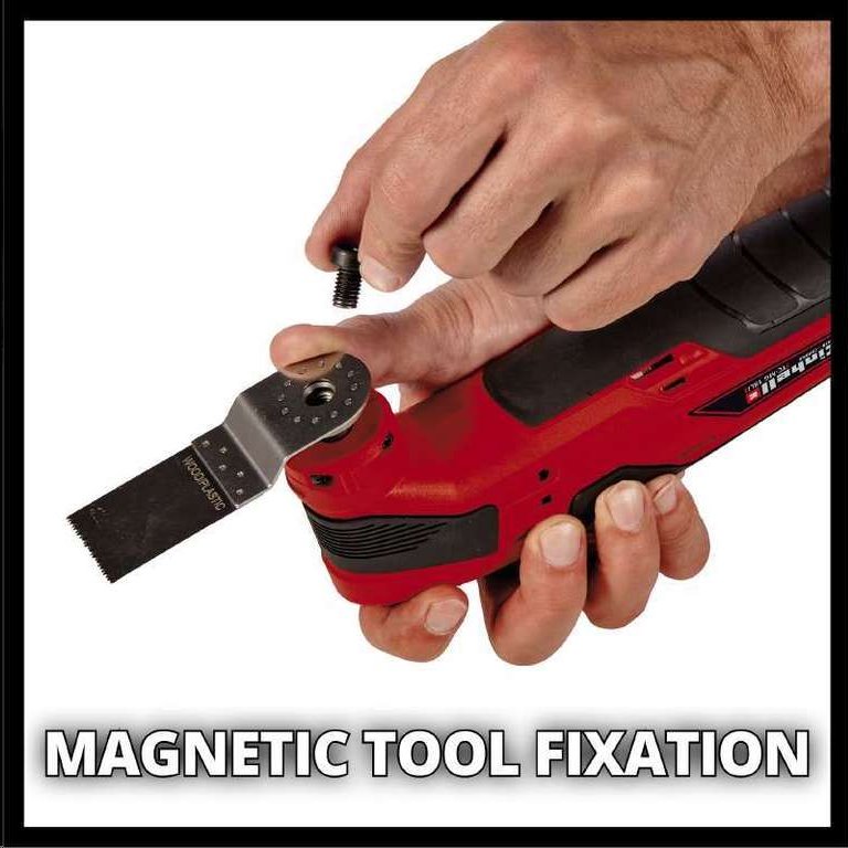 Einhell TC-MG 18 Li - Solo je vysoce kvalitní multifunkční nástroj, navržený pro ergonomický provoz, díky čemuž šetří čas i úsilí. S magnetický upevněním je výměna nástrojů hračka a to i bez použití dalšího nářadí. 12stupňová fixace umožňuje flexibilní nastavení nástavců. Regulace otáček vám pomůže přizpůsobit rychlost konkrétnímu povrchu i situaci. Ergonomická rukojeť zajišťuje bezpečný a pohodlný provoz.