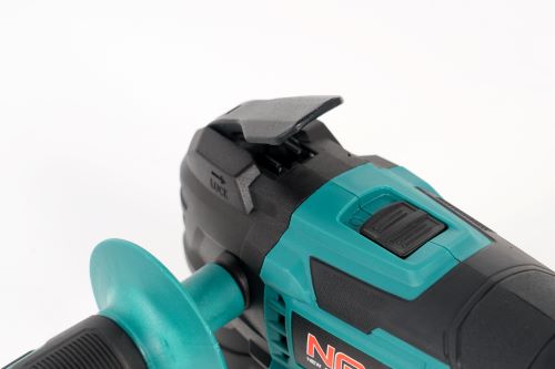 Řezný či brusný nástroj rychle a bez problému vyměníte. Navíc bez použití nářadí. Rukojeť brusky je ergonomicky tvarovaná a pokrytá protiskluzovým materiálem, takže ji pevně uchopíte. Přídavnou boční rukojeť můžete namontovat na 2 různá místa. Velkou výhodou je také pracovní LED světlo.