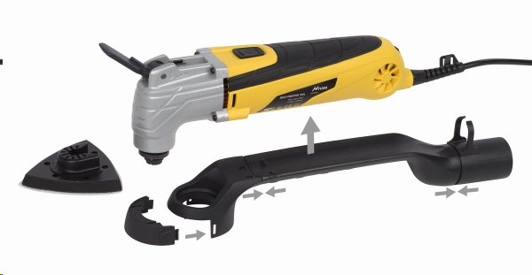 Všechny nástavce snadno vyměníte díky rychloupínacímu systému. S měkčeným držadlem vydržíte pracovat bez bolavých rukou o něco déle. Kabel o délce 3 m vám zajistí volnost pohybu při práci. K brusce lze připojit odsávací adaptér, takže po dokončení práce nemusíte uklízet hromádky hoblin.