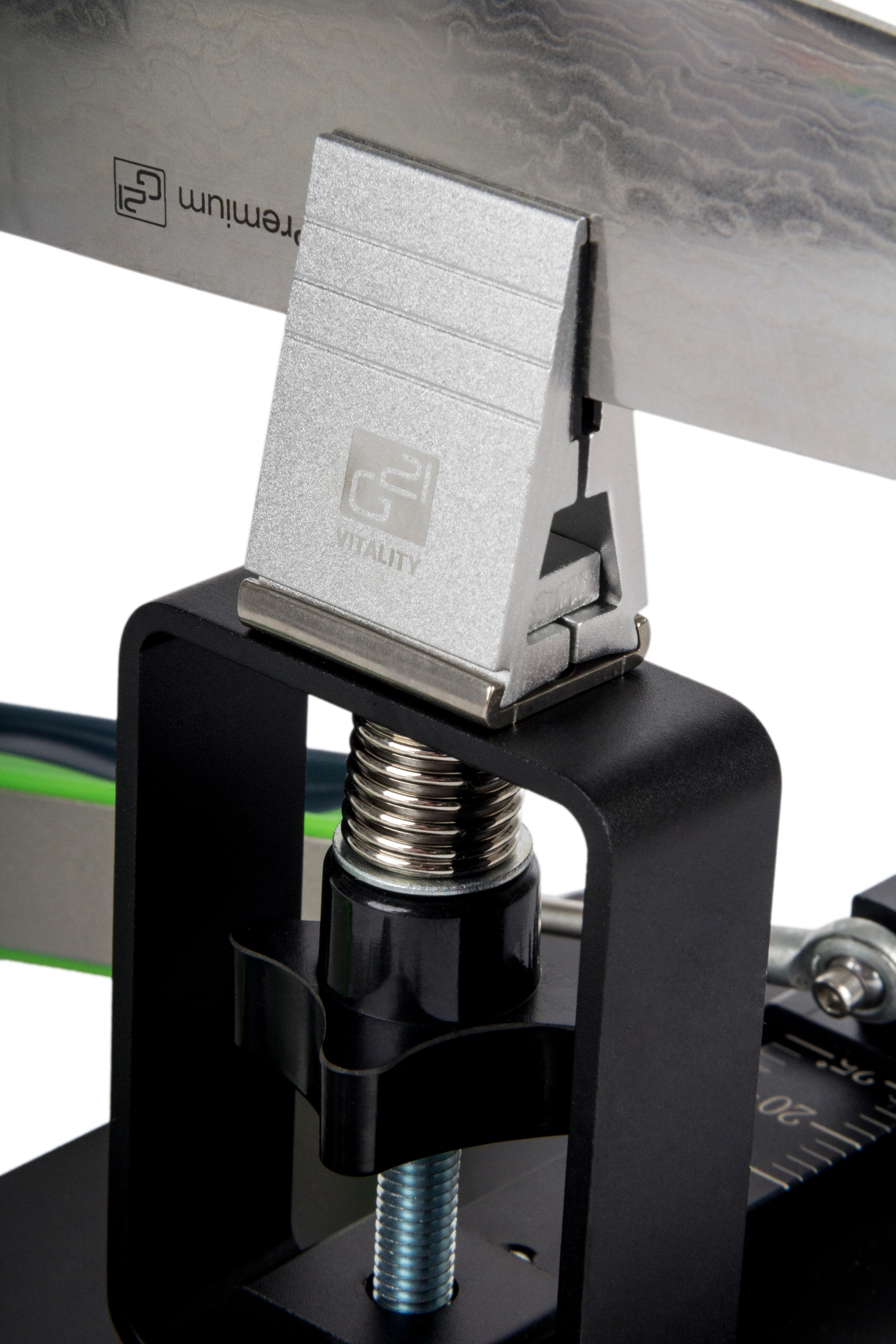 Profi ostřící sada je nastavitelná pro úhel od 15 ° do 30 °. Pro damaškové nože nastavte úhel 20–25 °, pro normální nože 25–30 °.