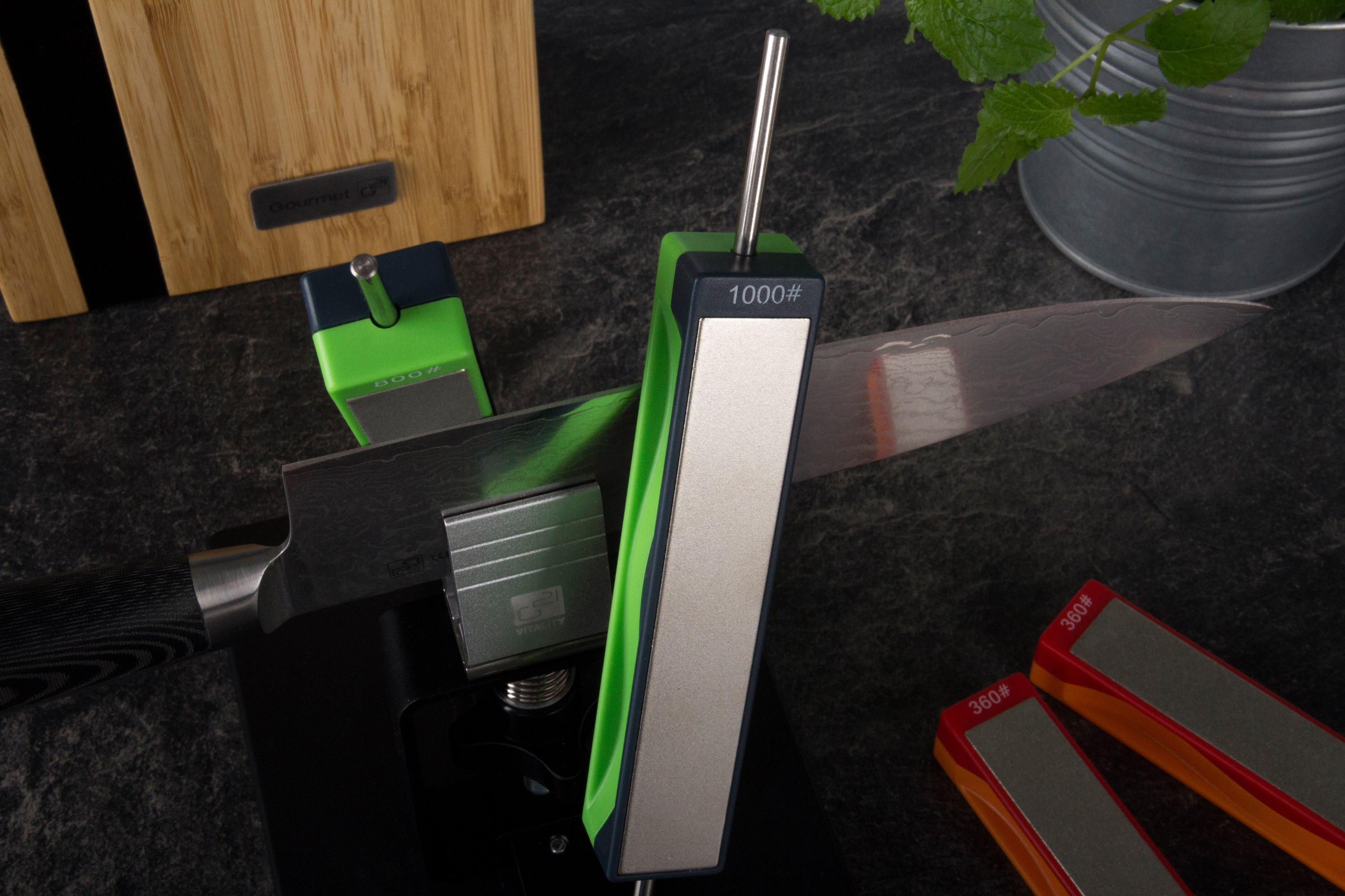 Pro broušení nožů využijte diamantové brusné bloky se zrnitostí #600, #800 a #1000.