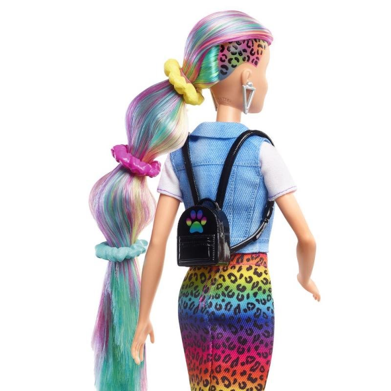 - 1x panenka Barbie Leopard Rainbow Hair W