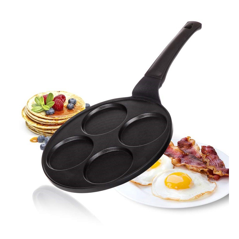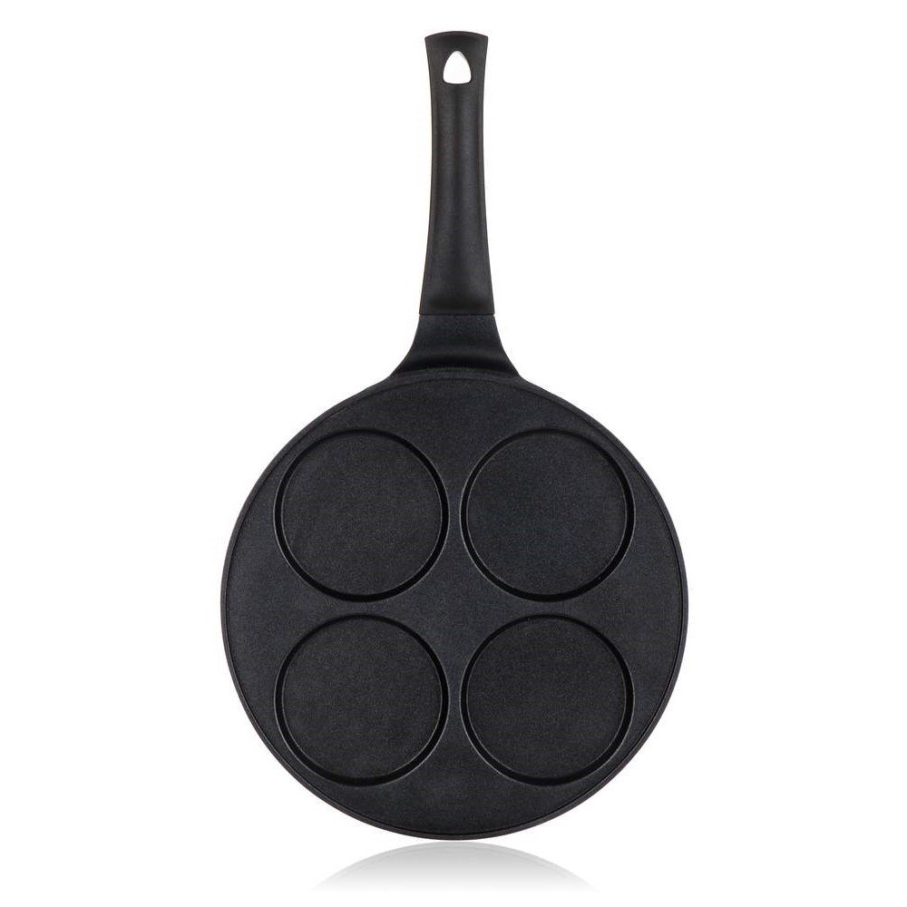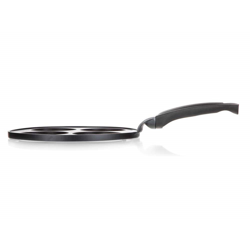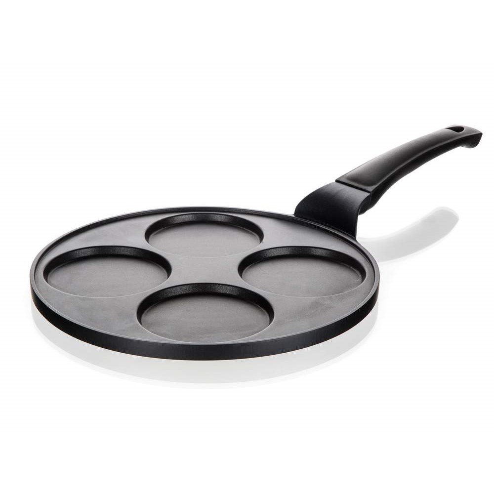 Pánev s praktickými formami vám umožní přípravu až 4 lívanců o průměru 10 cm najednou. Nikdo z vaší rodiny tedy na domácí pochoutku nečeká příliš dlouho.