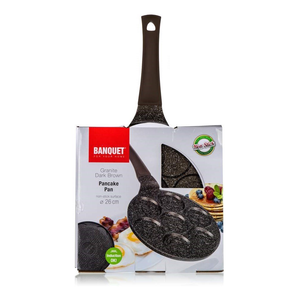 Připravte sobě a svým blízkým na pánvi od značky Banquet lahodné lívance. Je vyrobená z litého hliníku, který dobře vede teplo. Díky 2vrstvému nepřilnavému povrchu se vám na pánvi těsto jen tak nepřilepí. Navíc je vybavená 2vrstvým žáruvzdorným nástřikem.